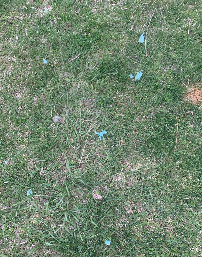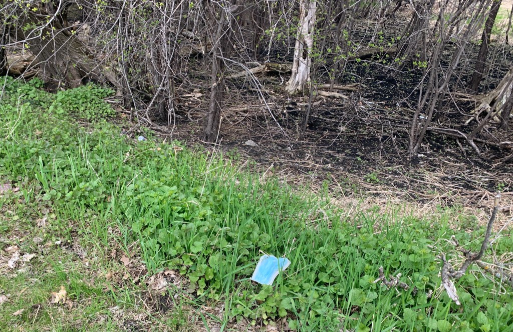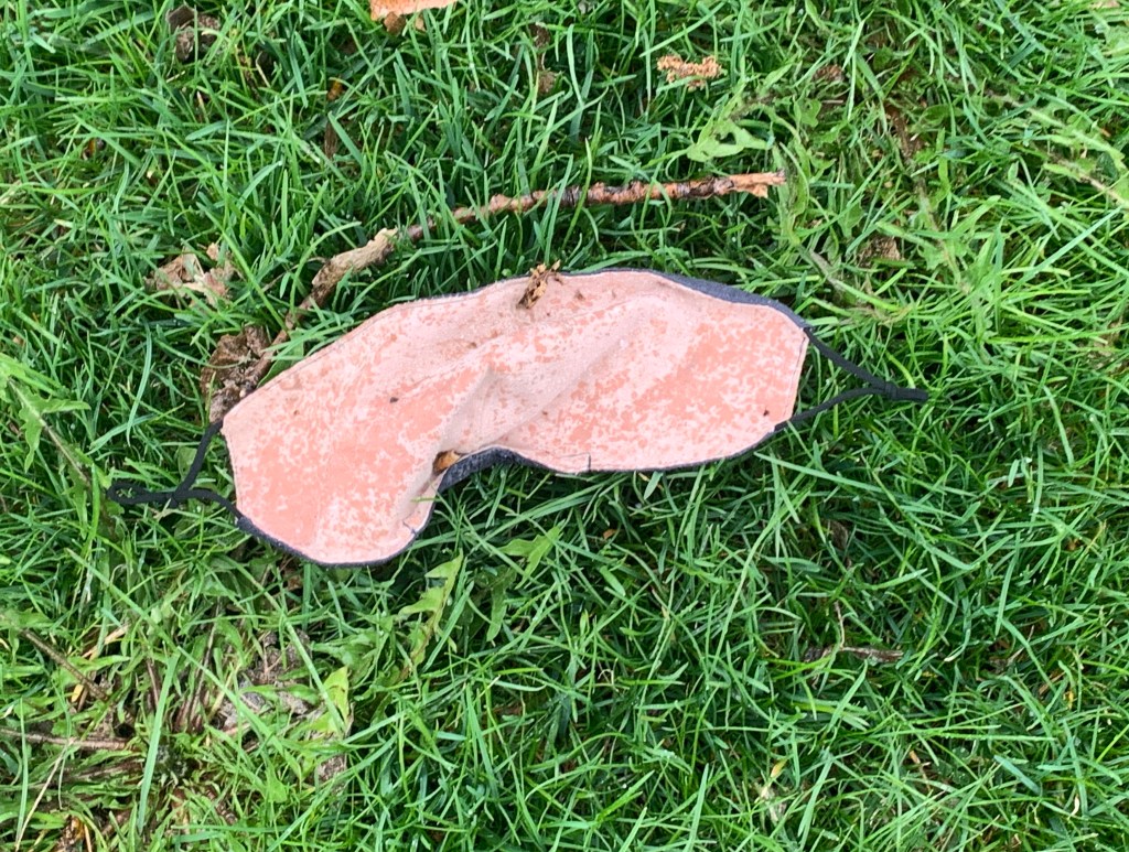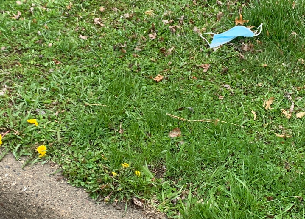 About a 3/4 mile walk (one way) through my neighborhood. I pass by what can only be described as almost completely park land. Photographed all the litter in masks that I passed- reminder this is a one way walk. Plus some of the local inhabitants….